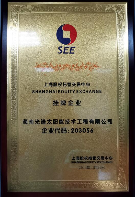 海南光譜節(jié)能環(huán)??萍加邢薰境闪⒂?001年,注冊資本1018萬元人民幣,是一家專業(yè)的太陽能、中央空調(diào)工程技術系統(tǒng)集成商。2014年12月24日,我司在上海股權托管交易中心成功掛牌,上股交代碼為:203056。