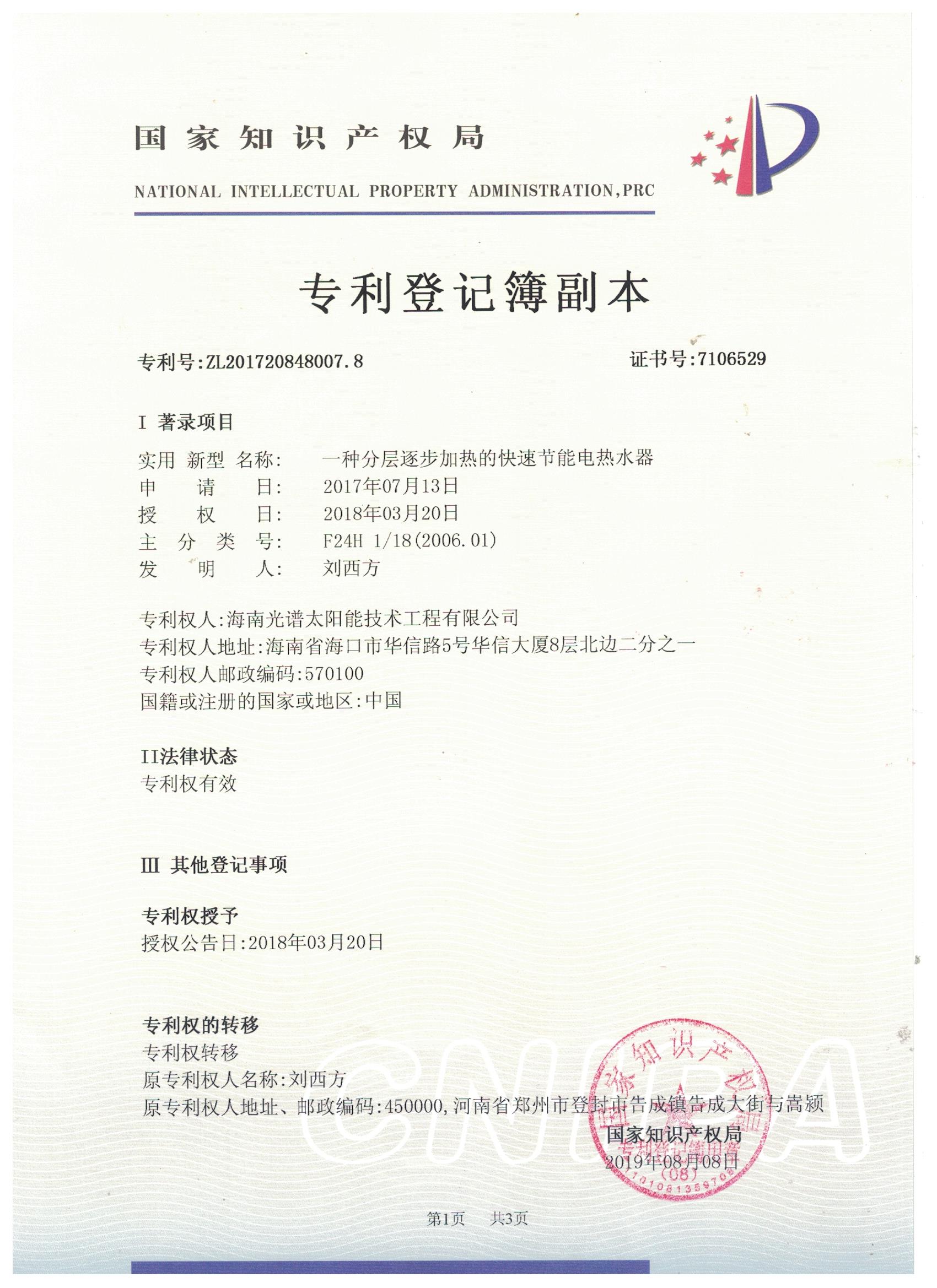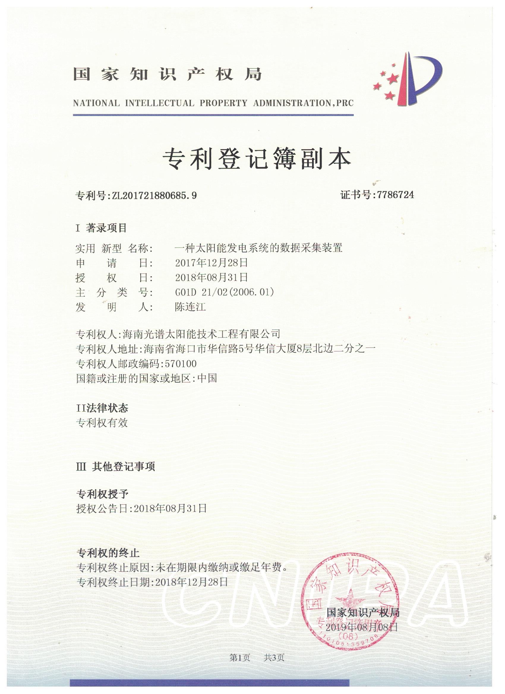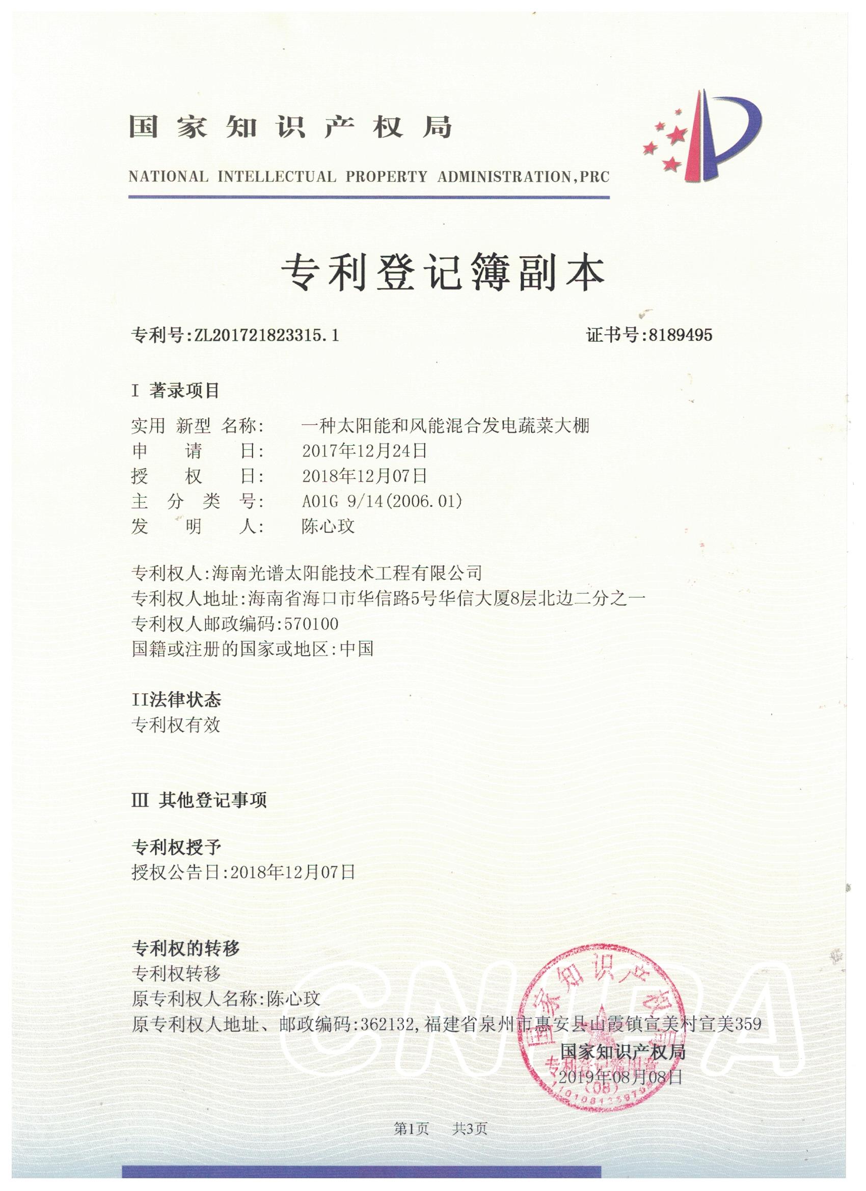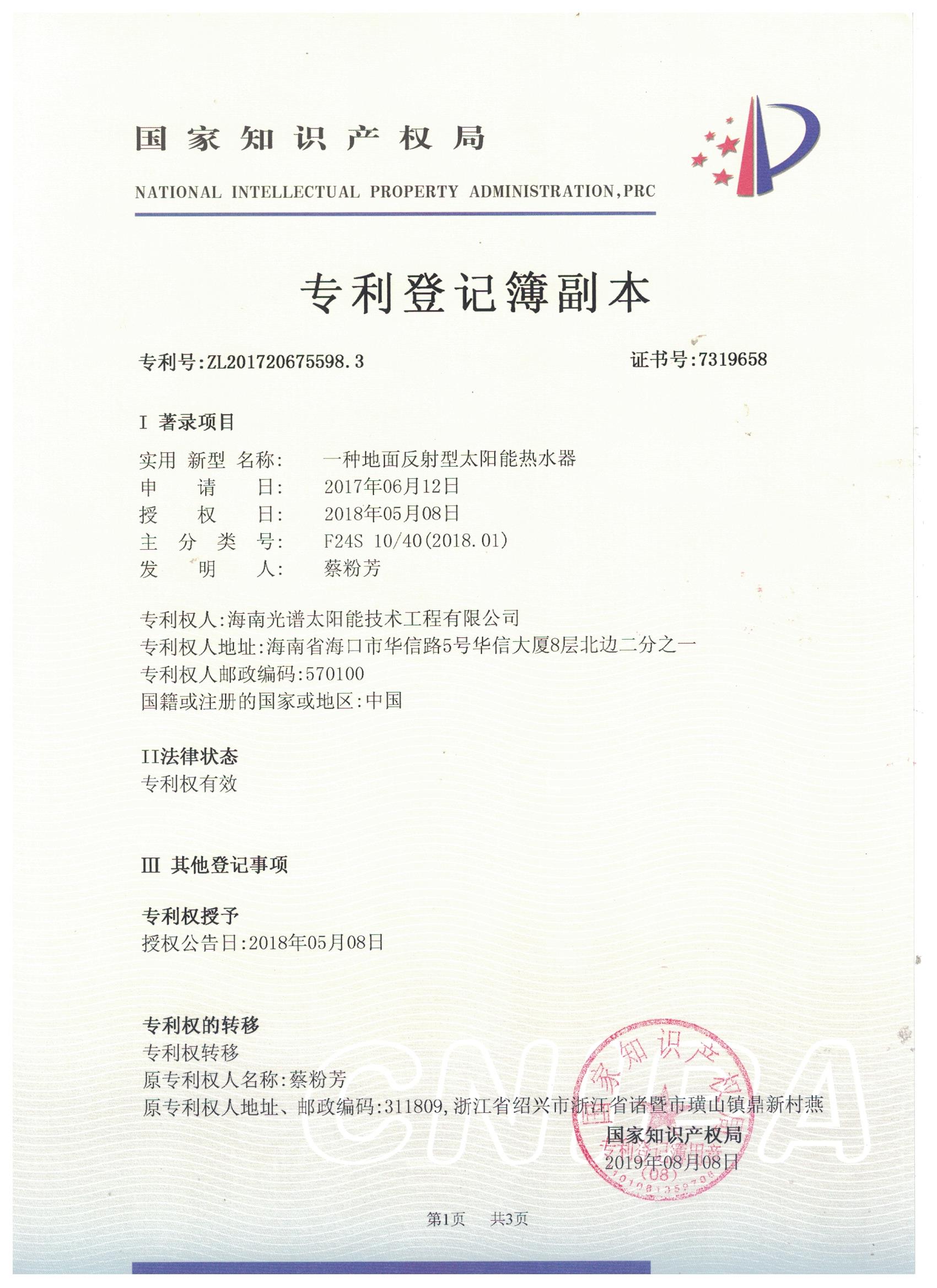 近日,我司申報的“一種太陽能熱泵蒸汽發(fā)生裝置”發(fā)明專利通過審查,獲得國家知識產(chǎn)權局授予的發(fā)明專利證書,授權專利號為“ZL201911126309.4”。 此次獲得國家頒發(fā)的專利證書,是對海南光譜公司創(chuàng)新實力的認可,代表著我司知識產(chǎn)權取得了突破性進展,為公司的持續(xù)性發(fā)展提供強有力的科技創(chuàng)...